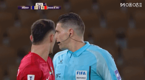 主裁亲自查看回放取消进球,迪拜国民球员围住主裁抗议,主裁示意重新掷界外球⬇️